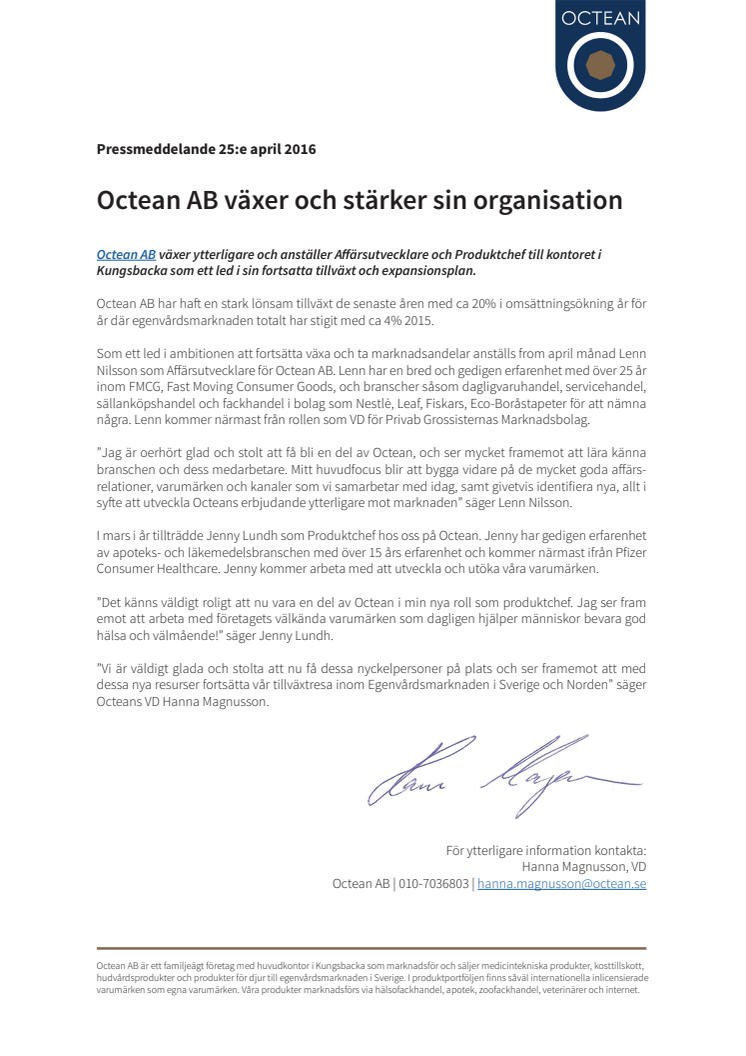 Octean AB växer och stärker sin organisation