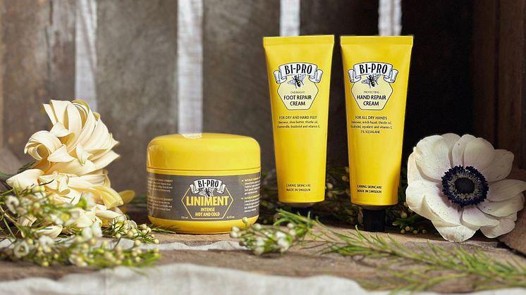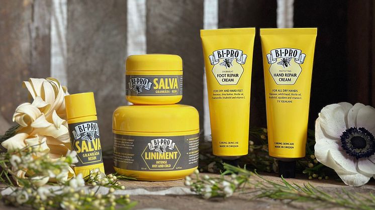 En ikon – bättre än så går det inte att beskriva BI-PRO kådsalva, som har varit på marknaden i snart 50 år. Med rötterna i nordisk folkmedicin och kraften från bivax och grankåda har BI-PRO bevisat hur naturliga ingredienser kan göra en verklig skillnad för huden. Nu, för första gången på över 24 år, lanserar varumärket tre spännande nyheter – BI-PRO Protecting Hand Repair Cream, Overnight Foot Repair Cream och Liniment Intense Hot and Cold. Samtliga tre produkter är 100% naturprodukter och berikade med mjukgörande bivax.