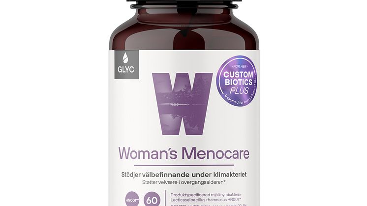 GLYC Woman’s Menocare – För kvinnor under och efter klimakteriet. Innehåller Lacticaseibacillus rhamnosus HN001™, Lactobacillus crispatus LCr86 och Lactobacillus gasseri LG08, samt Scutell'Up® (Baikalrot), salvia, linfrö, zink, vitamin B6, B12 och biotin – näringsämnen kopplade till hormonell reglering, humör och energi.