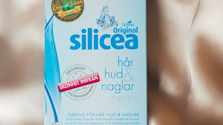 Original Silicea kapslar innehåller mineraliskt kisel, biotin, zink, mangan och selen– ett helt naturligt och vegetabiliskt kosttillskott för hår, hud och naglar.