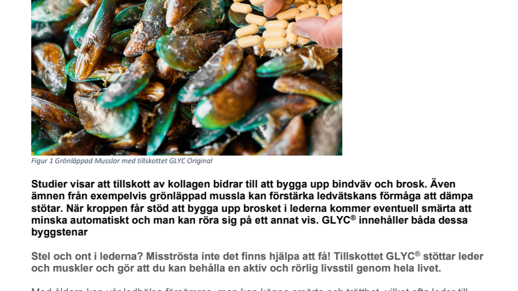 Stel och ont i lederna? Misströsta inte det finns hjälpa att få! Tillskottet GLYC® stöttar leder och muskler och gör att du kan behålla en aktiv och rörlig livsstil genom hela livet.