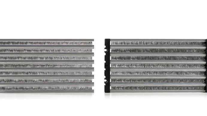 PTC-luftvärmare är motståndsvärmare med stor yta för homogen uppvärmning av luftflöden. De uppnår en effekt på upp till 3kW, beroende på typ, och kan inte överhettas tack vare PTC-effekten. Deras värmeflänsar i V- eller deltaform möjliggör homogen värmefördelning och lågt tryckfall. Den isolerade HRP-versionen har en ökad motståndskraft mot vibrationer, smuts och fukt och är lämpad för svåra miljöförhållanden.
