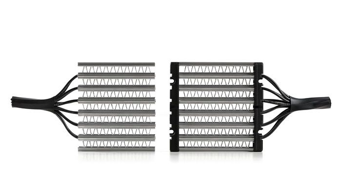 PTC-luftvärmare kommer med alla fördelar med PTC-värmetekniken. Tack vare PTC-effekten justerar värmeelementen sin effekt dynamiskt utan att överskrida en maxtemperatur. Hög driftsäkerhet och energieffektivitet utan några extra kopplingselement.