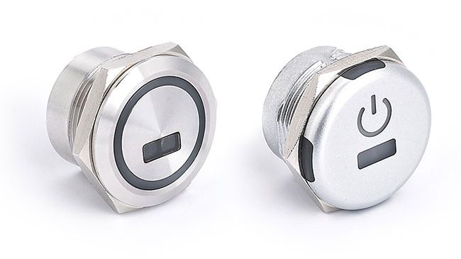 Vi har även en serie med piezobrytare (touch) som finns i monteringstorlekarna 12, 16, 19 samt 22 mm. De är vandalsäkra och klassade upp till IP69K.