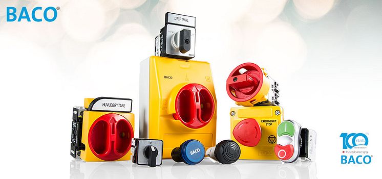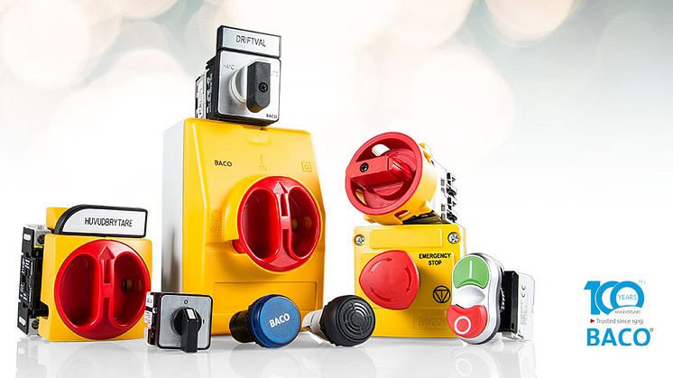 BACO - vår tillverkare av tryckknappar, kamströmställare och lastfrånskiljare fyller hela 100 år som företag i år. Vårt samarbete startade för 39 år sedan och det är med en stor ära vi firar denna födelsedag med dem.