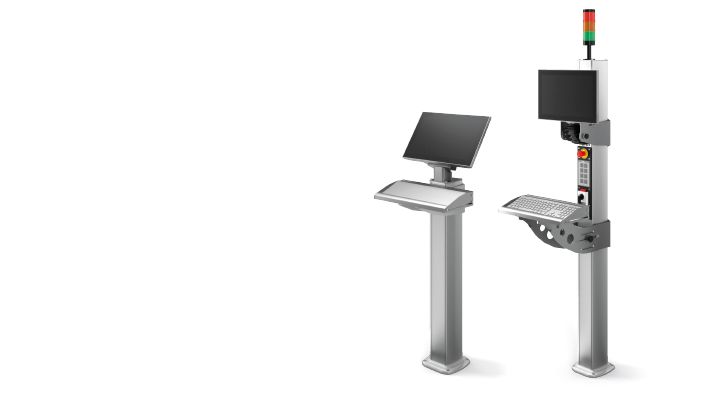 Den höga IP-klassen (IP65) och positionering av ledningar i pelaren möjliggör installation i krävande miljöer. Displayen kan monteras på ett antal olika sätt och det är mycket smidigt att höja och sänka den.