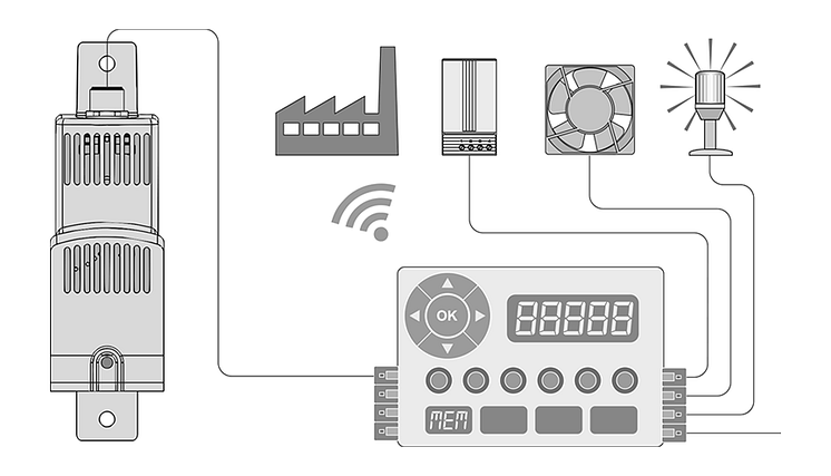 Smart Sensor CSS014 registrerar elektroniskt temperatur och luftfuktighet för att sedan omvandla de uppmätta värdena till en analog 4-20 mA-signal. Ett annat standardiserat gränsnittsformat som är möjligt är till exempel I/O-Link. Ett digitalt gränssnitt för små givare och ställdon med punkt-till-punkt förbindelse. De omvandlade värdena kan användas eller vidarebehandlas av en kontroll- eller övervakningsenhet, exempelvis ett PLC.