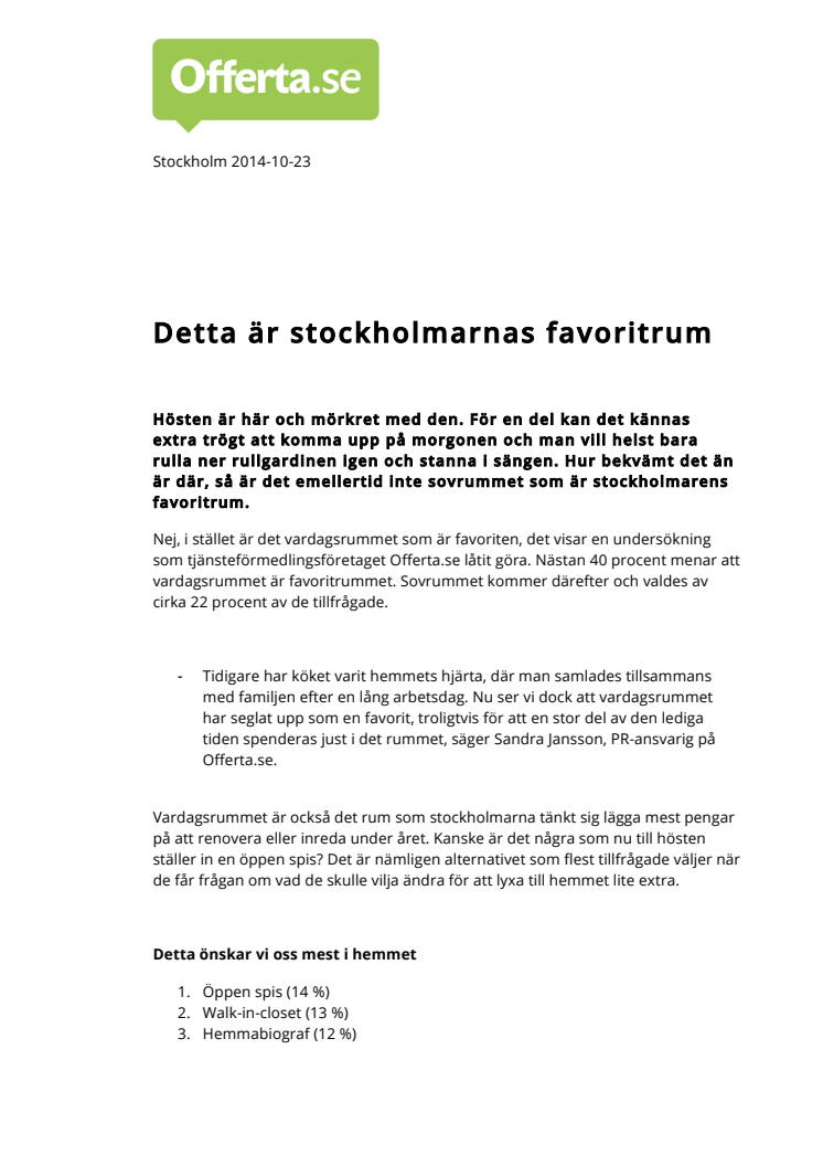 Hösten är här och mörkret med den. För en del kan det kännas extra trögt att komma upp på morgonen och man vill helst bara rulla ner rullgardinen igen och stanna i sängen. Hur bekvämt det än är där, så är det emellertid inte sovrummet som är stockholmarens favoritrum.