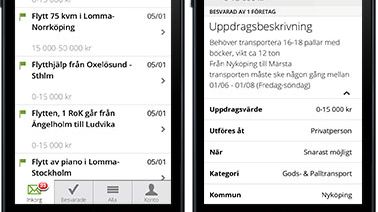 Appen är ett smidigt verktyg för de företag som jobbar mycket ute på fältet och inte har möjlighet att sitta vid datorn och bevaka inkommande uppdrag. När det kommer ett nytt uppdrag skickas en push-notis som tar användaren direkt till appen där man kan läsa och enkelt besvara förfrågan med en knapptryckning.