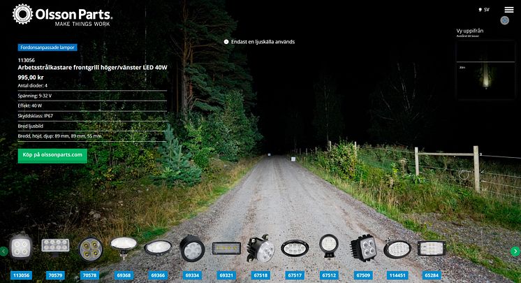 – Bra och rätt belysning är avgörande för både säkerhet och effektivitet. Därför vill vi göra det enkelt att förstå hur våra olika ljuskällor presterar i verkligheten. På lights.olssonparts.com kan kunden göra en faktabaserad jämförelse av ett större urval av vårt belysningssortiment. Såvitt vi vet är detta det mest omfattande belysningstestet på marknaden, säger Olsson Parts IT- och marknadschef Christian Askland och den som står bakom projektet.