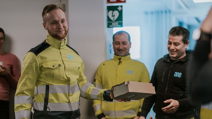 ONE Nordics Medarbetare i projektet har samlats för att fira den 800 000 installationen.