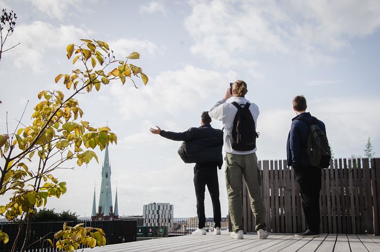 Visning av Vasakronans huvudkontor, där besökarna fick njuta av utsikten från takterrassen, under Open House Stockholm-festivalen 2023.