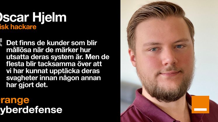 Orange Cyberdefense har lång erfarenhet av etisk hackning. Bland medarbetarna ingår till exempel SensePost, en internationell elitgrupp av etiska hackare med över 20 år i branschen. En del etiska hackare har börjat som traditionella hackare för att sedan byta sida, men för Oscar Hjelm var det ett stort intresse för säkerhet generellt som lockade honom till yrket.