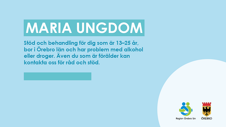 Bild med logotyperna för Örebro kommun och Region Örebro län samt text om Maria ungdom