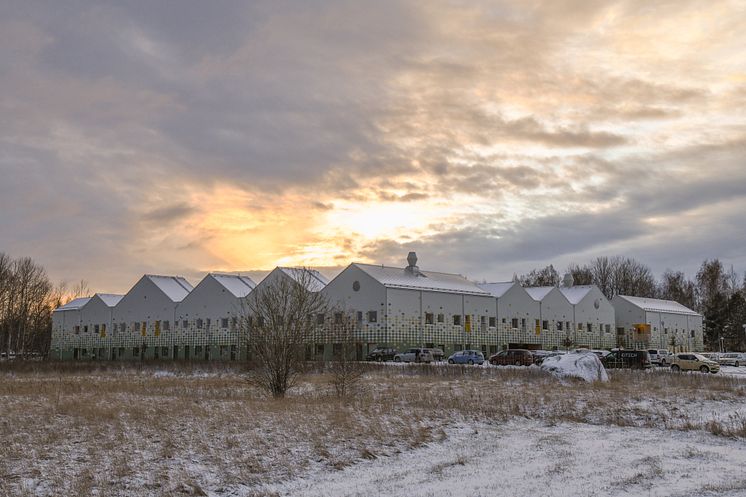 Vårdboendet Trädgårdarna utifrån. Byggprojektet belönades med Örebro kommuns byggnadspris 2017 vid en prisceremoni den 21 december 2017. Beställare av projektet är: Örebro kommun/SKANSKA. Arkitekt för byggnad är: Marge Arkitekter. Arkitekt för trädgård är: Land Arkitektur.