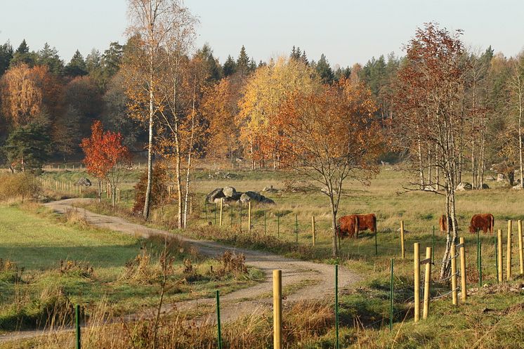 Stora delar av skogen runt det öppna odlingslandskapet har stängslats för att kunna betas, och djuren som går där under maj till oktober, hjälper till att skapa öppna skogar med en artrik flora.