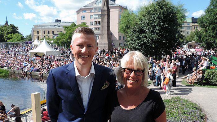 Solen sken över de tusentals människor som samlats kring scenen vid Svartån och Henry Allards park och över mottagarna av Pedagogiskt pris 2015. Med som gratulanter och prisutdelare var programdirektör Marie Holm samt kommunalråden Kenneth Nilsson (S) och Karolina Wallström (FP).