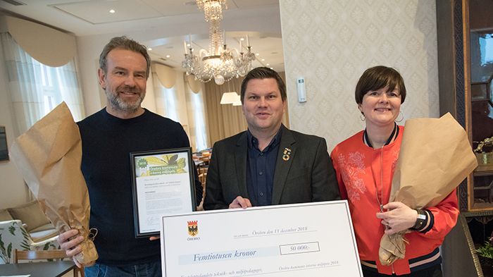 Örebro kommuns interna miljöpris 2018 gick till teknik- och miljöpedagogerna Mita Moberg och Svante Ivarsson. Priset delades ut vid Kommunfullmäktige den 11 december. Syftet med priset är att lyfta fram goda förebilder och ge ökat fokus åt miljöfrågorna.
