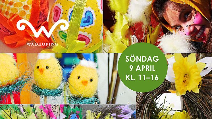 Söndagen den 9 april kl. 11–16 är det dags för Wadköpings påskmarknad. Här kan du hitta pynt, hantverk, mat, ägg, påskris och mycket annat som hör påsken till. Välkomna!