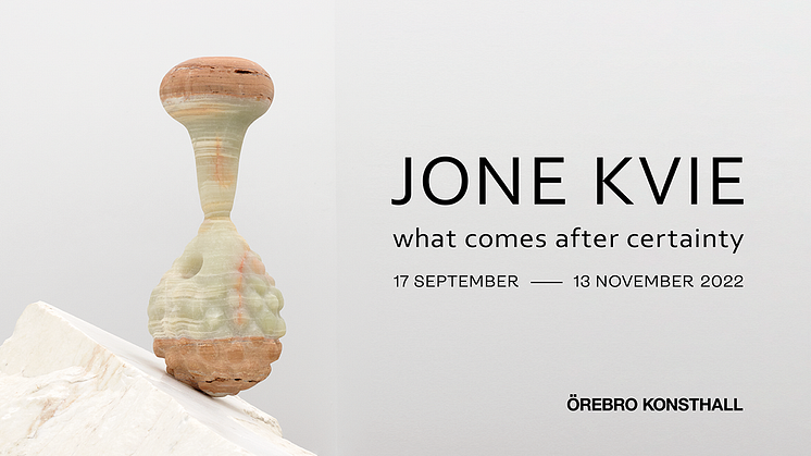 Örebro konsthall presenterar what comes after certainty med Jone Kvie. I verket med samma namn som utställningen kröns ett obearbetat stycke carraramarmor av en meteoritiskt svarvad onyx. Två delar av samma sten har satts samman för att spegla sin egen parallellmönstrade teckning.