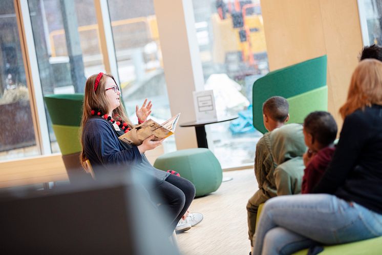 Besöket på Kulturkvarteret har haft sin röda tråd kring den populära Augustprisade boken Gropen av Emma Adbåge. Turen börjar i entrén och receptionen och där karaktärerna och guiderna för dagen, Kultis och Kvartis möter upp.