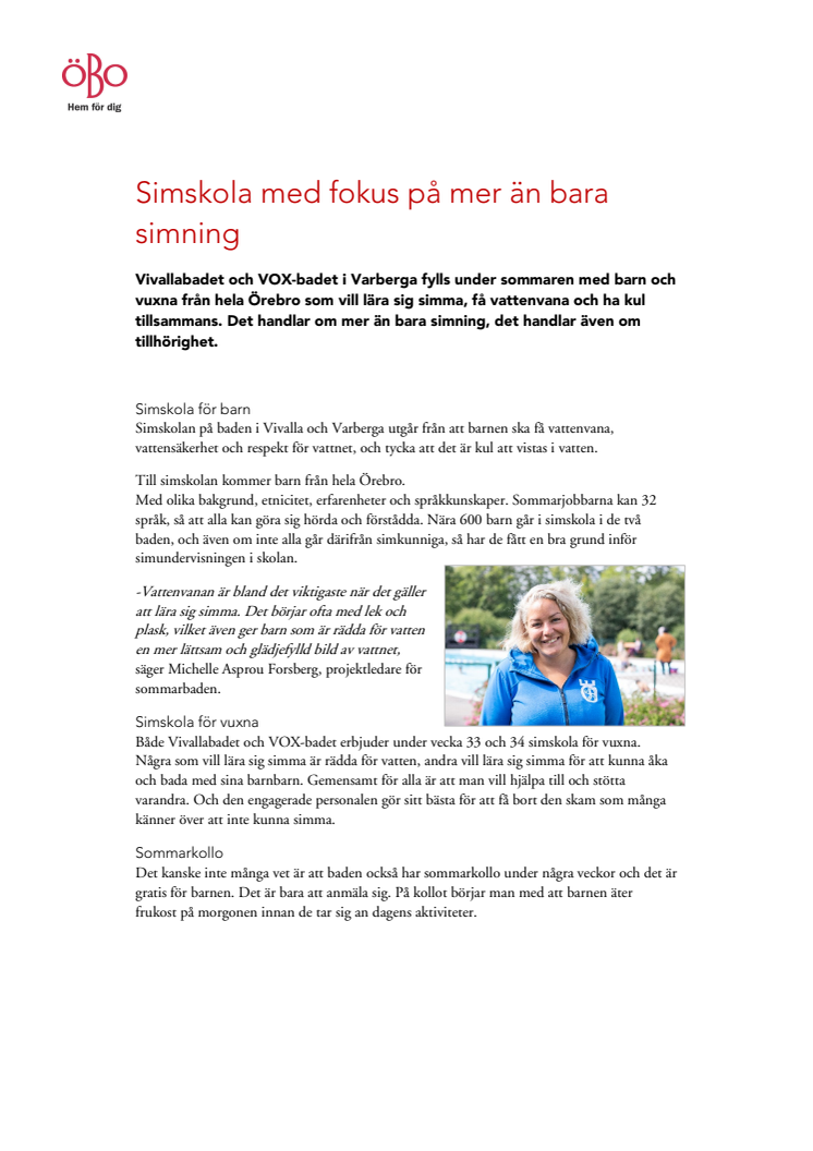 Vivallabadet och VOX-badet i Varberga fylls under sommaren med barn och vuxna från hela Örebro som vill lära sig simma, få vattenvana och ha kul tillsammans. Det handlar om mer än bara simning, det handlar även om tillhörighet.