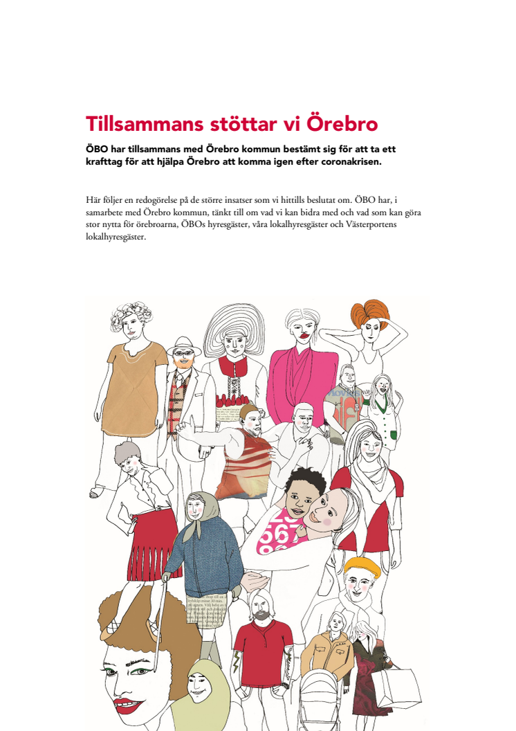 Redogörelse på de större insatser som vi hittills beslutat om. ÖBO har, i samarbete med Örebro kommun, tänkt till om vad vi kan bidra med och vad som kan göra stor nytta för örebroarna, ÖBOs hyresgäster, våra lokalhyresgäster och Västerportens lokalhyresgäster.