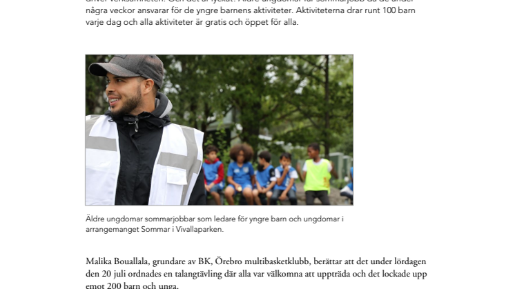 Under flera år har det arrangerats aktiviteter under sommarlovet för barn och unga i Vivalla. Under nio veckor fylls dagarna med skattjakter, tjejkvällar, volleyboll, kulturaftnar, familjedagar, pysselhörna, loppis, basket med mera. De senaste åren är det ÖBO som tillsammans med olika föreningar, Västerporten, Vivalla folketshus och Örebro kommun driver verksamheten. Och det är lyckat! Äldre ungdomar får sommarjobb då de under några veckor ansvarar för de yngre barnens aktiviteter. Aktiviteterna drar runt 100 barn varje dag och alla aktiviteter är gratis och öppet för alla.