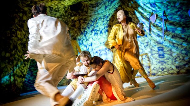 Örebro länsteaters Medeas barn, av Susanne Osten och Per Lysander i regi av Michael Cocke är ett aktuellt exempel på angelägen konst som produceras på länsteatrarna och väcker intresse i hela landet. Här med skådespelarna Hans Christian Thulin, Petter Andersson, Frida Jansdotter och Maria Simonsson, foto Kicki Nilsson, Icon Photography.