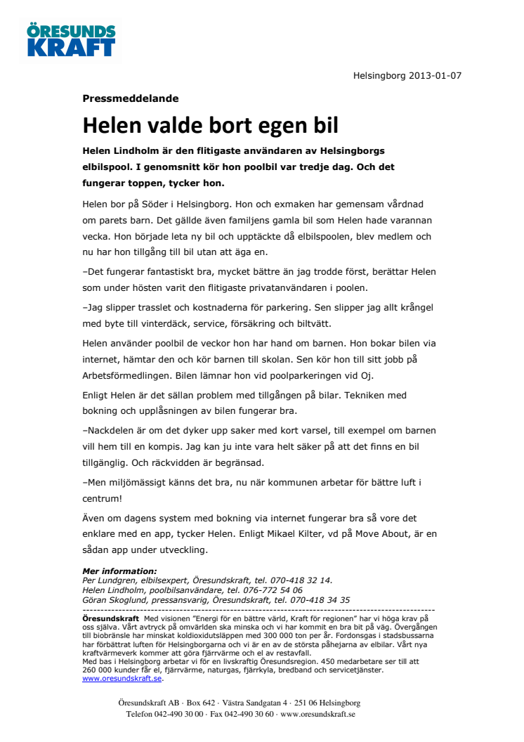 Den flitigaste användaren av Helsingborgs elbilspool heter Helen Lindholm. Hon använder en poolbil varannan vecka och det fungerar toppen, tycker hon.
