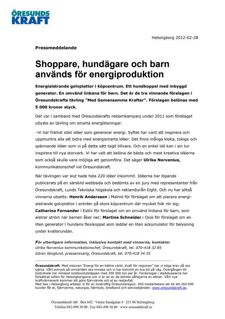 Femtusen kronor vardera. Det är belöningen till de tre som vann Öresundskrafts tävling om smarta energilösningar. Hela 220 förslag lämnades in.