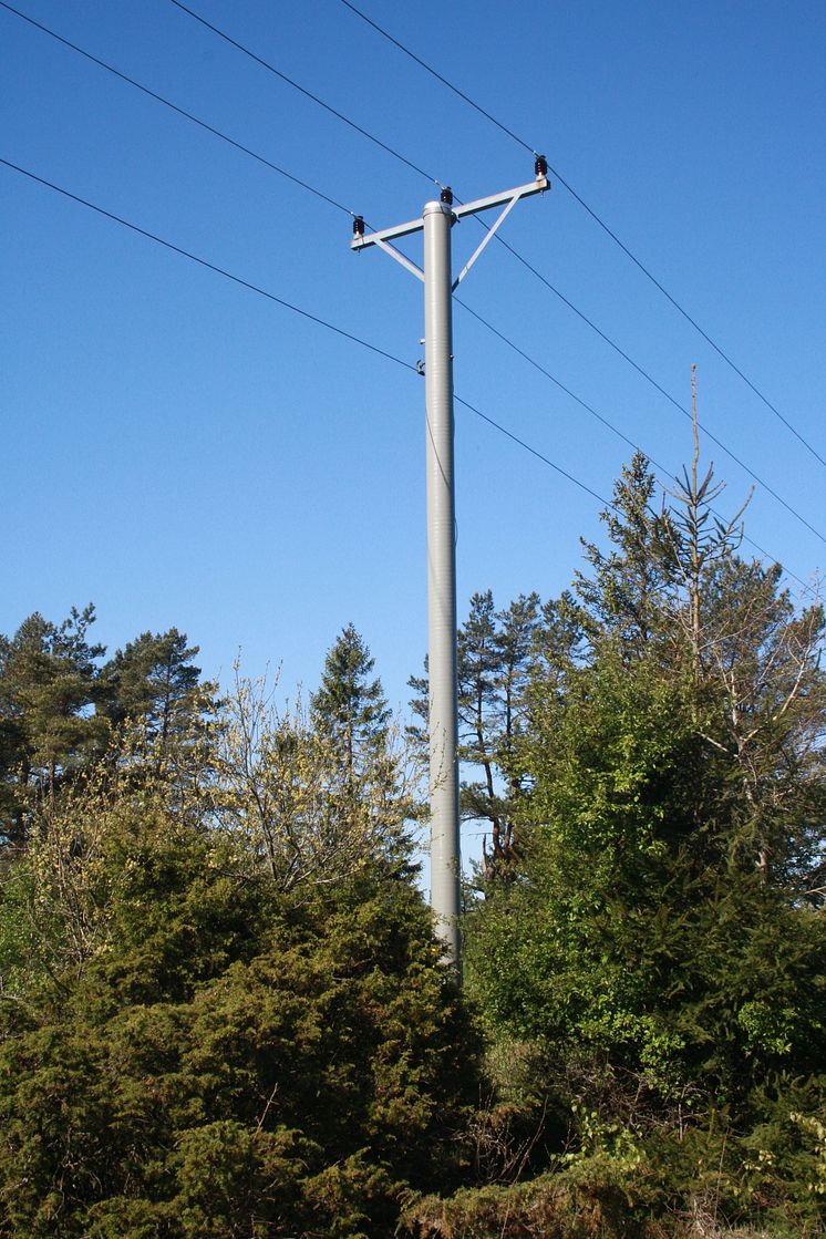 En ny elstolpe i kompositmaterial, försett med fäste för installation av Exeri Smart Grid Surveillance.
