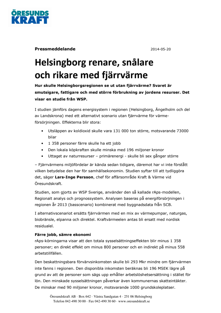 Helsingborg renare, snålare och rikare med fjärrvärme