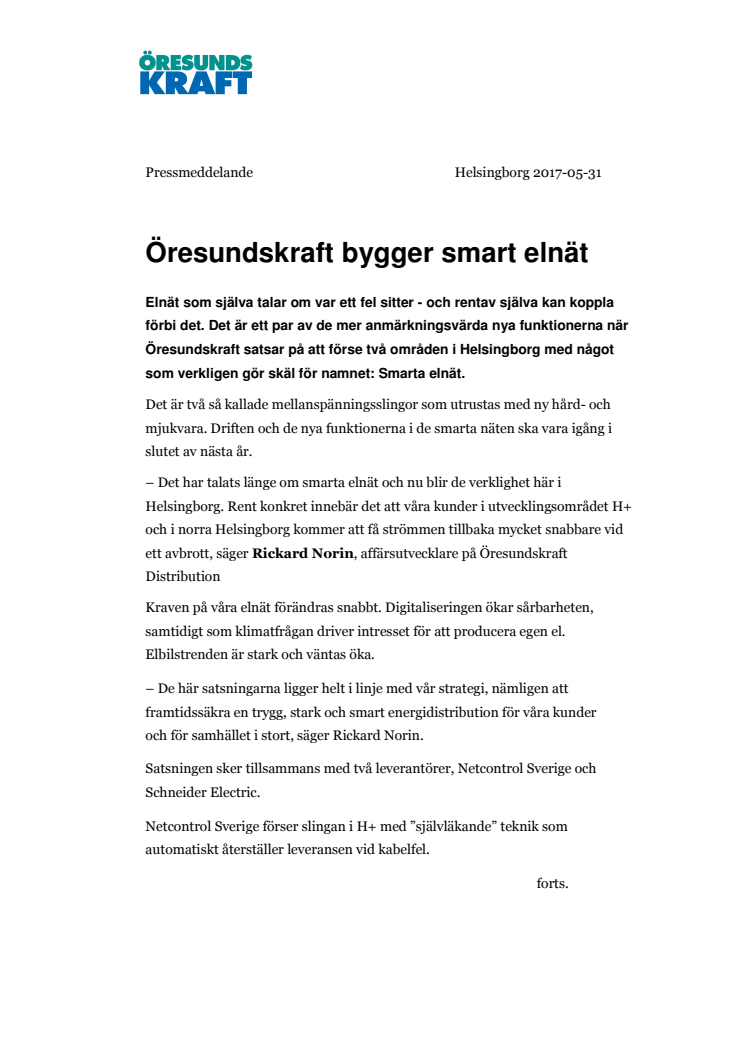 Rickard Norin, affärsutvecklare, Öresundskraft Distribution, tel. 070-418 35 15