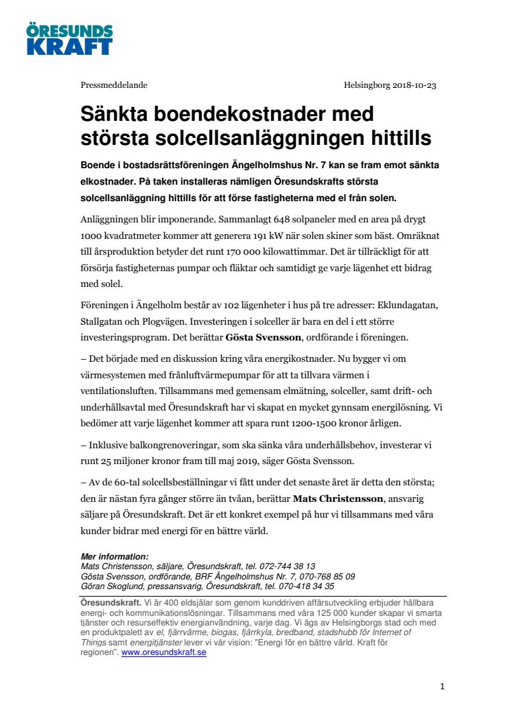 Göran Skoglund, pressansvarig, Öresundskraft, tel. 070-418 34 35