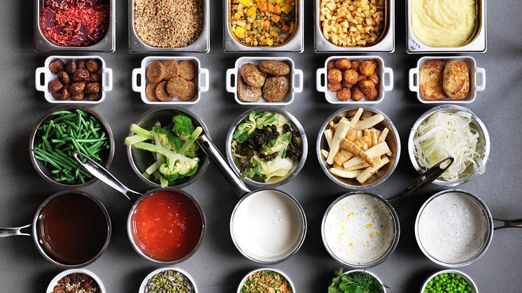 Tanken med konceptet är att du enkelt ska kunna byta ut kött, fågel eller fisk mot smarriga vegetariska alternativ såsom falafel, vegobullar eller pulled vego. Och många gäster vill dra ner på kött för att få i sig sin dagliga dos, så välj protein efter humör och klimat.