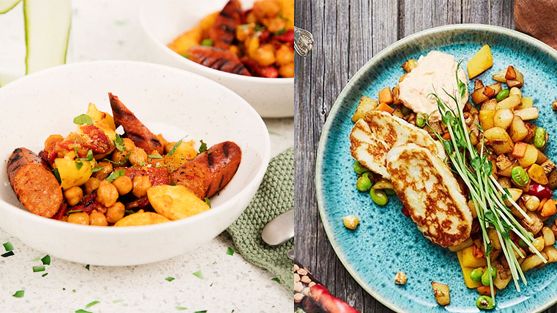 Torsdag: Vegetarisk Pytt med grillad halloumi och ajvarsås
