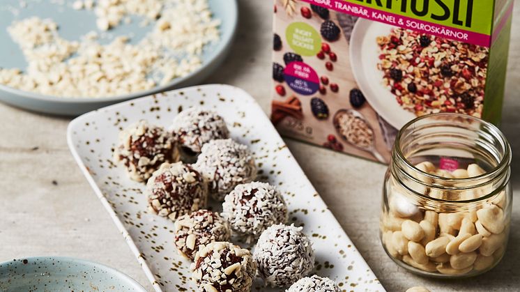Till efterrätt: Rawbollar med glutenfri Supermüsli
