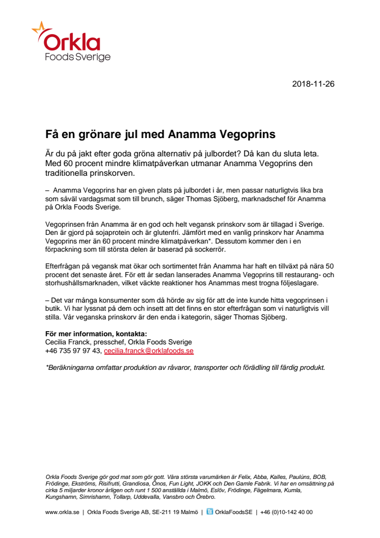 Är du på jakt efter goda gröna alternativ på julbordet? Då kan du sluta leta. Med 60 procent mindre klimatpåverkan utmanar Anamma Vegoprins den traditionella prinskorven.