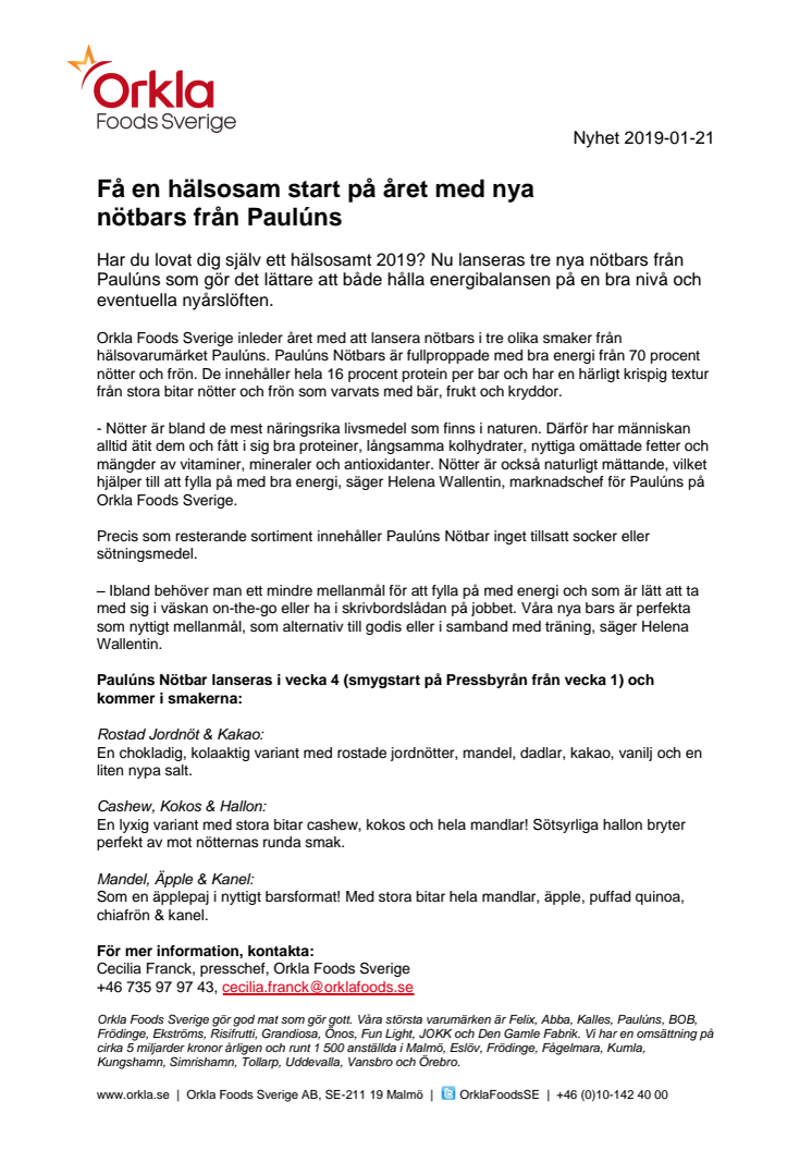 Få en hälsosam start på året med nya nötbars från Paulúns