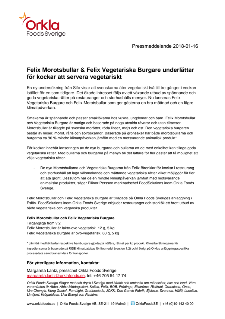 Felix Morotsbullar & Felix Vegetariska Burgare underlättar för kockar att servera vegetariskt