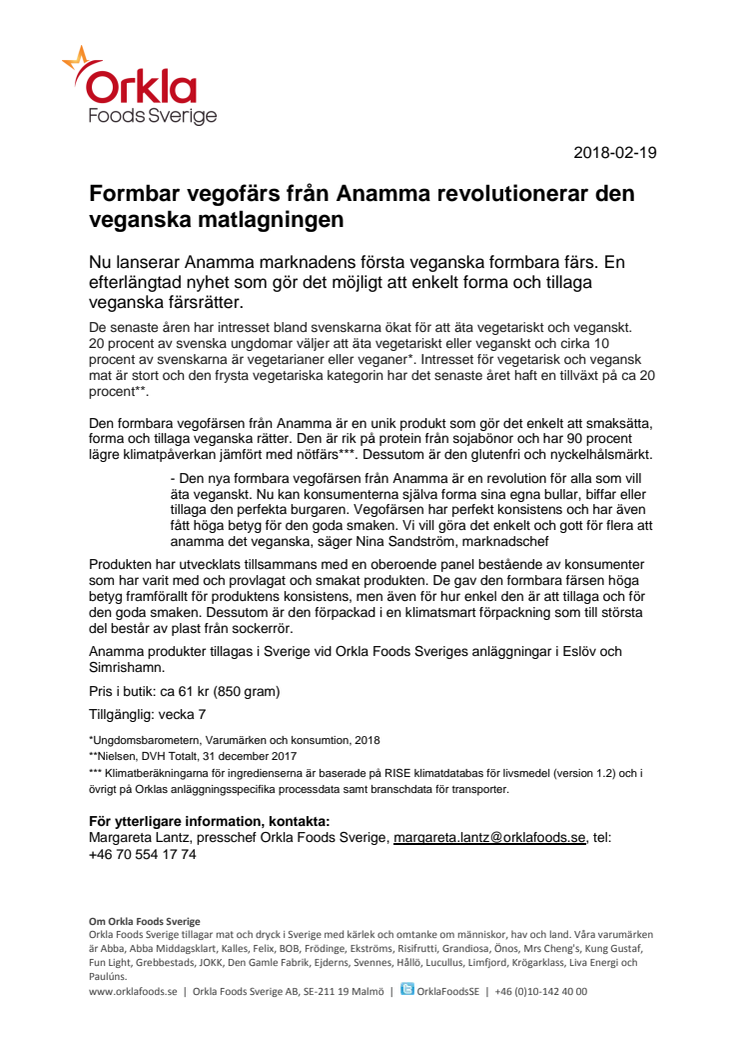 Nu lanserar Anamma marknadens första veganska formbara färs. En efterlängtad nyhet som gör det möjligt att enkelt forma och tillaga veganska färsrätter.