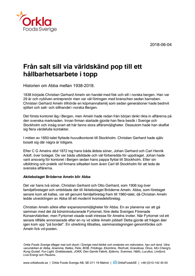 Historiebeskrivning av varumärket Abba + tidslinje 1938-2018