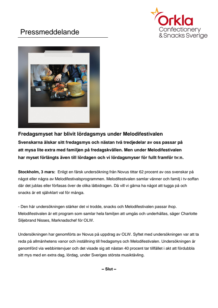Svenskarna älskar sitt fredagsmys men under Melodifestivalen har myset förlängts även till lördagen och vi lördagsmyser.