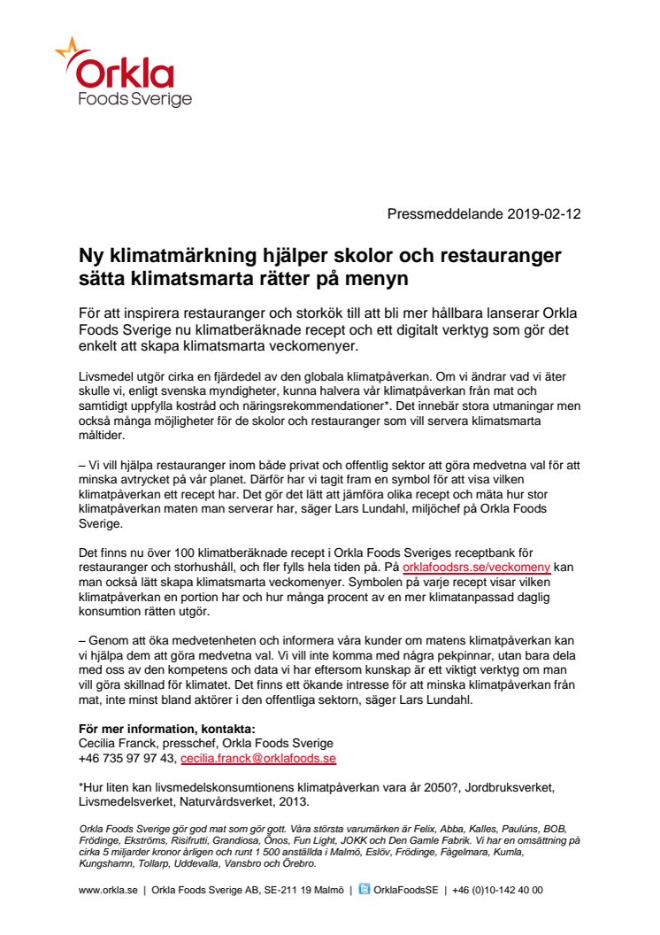 För att inspirera restauranger och storkök till att bli mer hållbara lanserar Orkla Foods Sverige nu klimatberäknade recept och ett digitalt verktyg som gör det enkelt att skapa klimatsmarta veckomenyer.