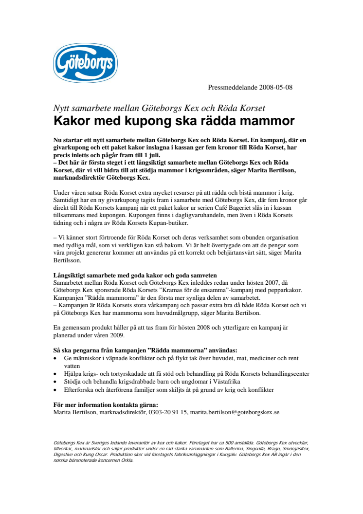 Nu startar ett nytt samarbete mellan Göteborgs Kex och Röda Korset. En kampanj, där en givarkupong och ett paket kakor inslagna i kassan ger fem kronor till Röda Korset, har precis inletts och pågår fram till 1 juli.
