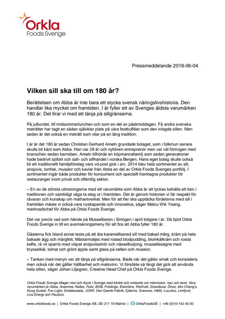 Berättelsen om Abba är inte bara ett stycke svensk näringslivshistoria. Den handlar lika mycket om framtiden. I år fyller ett av Sveriges äldsta varumärken 180 år. Det firar vi med att tänja på sillgränserna.