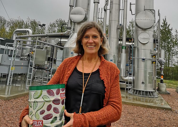 Agneta Påander, CSR-direktör på Orkla Foods Sverige, på invigningen av biogasanläggningen i Eslöv.