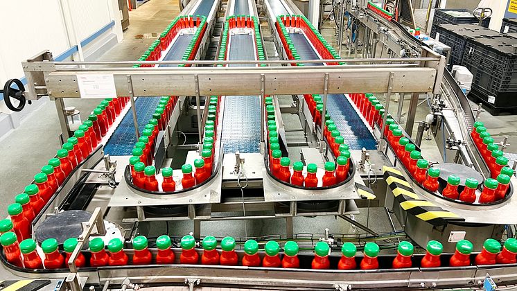 Flera Felixtomatketchupflaskor i rad på band-.jpg