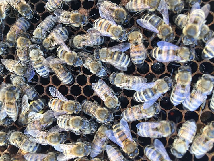 Närbild på bin från Orkla Foods Sveriges huvudkontor